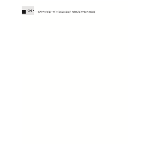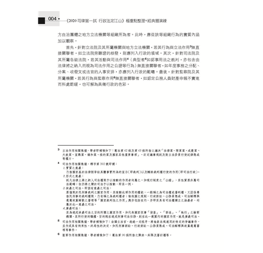 六大行政法章節加上歷屆題目詳解,平均一個章節不到一百頁,全部一口氣搞定,順利放眼二試!