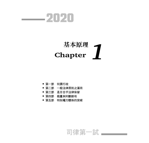 行政法範圍浩瀚無邊,這次就別再費心到處蒐集考點了。這本書就是妳/你最好的選擇,因為我們把面對一試考題必須具備、反覆出現的「法條、基本法理、實務見解還有歷屆考古題」通通放在同一本書了,還按照教科書的體系編排,讓讀者念完每個章節,就能馬上練習對應題目、享受細心詳解,給妳/你強大信心前往考場!