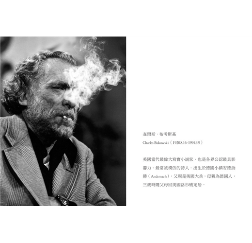 生於街頭長年身處貧窮,他以自傳式寫作著稱,為社會底層之人發聲,也描寫生活大半輩子的洛杉磯的毀滅性景象,而富節奏感的粗俗口語語言,啟發無數知名搖滾樂手。他是堪稱作品失竊率最高、美國最具反叛精神的代表人物,作品曾被翻譯成十多種語言,歐美累積銷售數百萬冊,有生平紀錄片《布考斯基:生來如此》(Bukowski: Born into This)和傳記電影《夜夜買醉的男人》(Barfly),人氣在世界各地迄今未減。