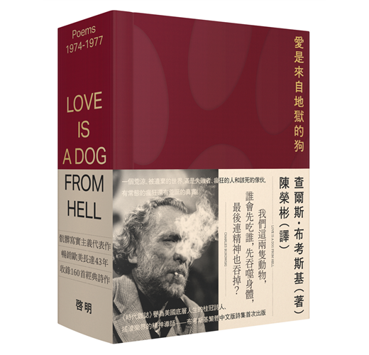 詩集《愛是來自地獄的狗》收錄1974-1977年的作品,分為四輯:「又有一隻動物,為愛痴狂」、「我,和那老女人:悲傷」、「史嘉莉」、「你腦海裡最後浮現的流行旋律」,總計160首詩寫於年屆五十多歲的布考斯基,寫他未曾停止的五個生命主題:女人、性、賽馬、寫作與酒精,也寫死亡與生的恐懼於心中狂噪不止。