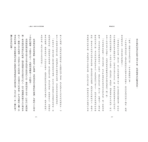 儘管恢復了單身的生活,她卻找不到自己,不知道為什麼而活?我仔細聆聽她的心聲,逐漸從一些零碎的片段陳述,拼湊出她此刻的心靈版圖,我告訴她,其實離婚後的傷一直都在,而妳人生的叛逆期,此刻才正要開始。