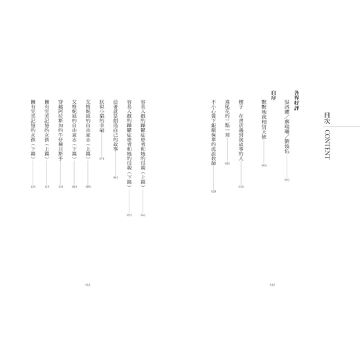 很幸運地,真實的人生旅程,我一直遇見天使,總在不知所措的十字路口,有人願意拉我一把。記得念中學時,有件事令我非常難過,那天放學我恍神筆直走向斑馬線,一輛公車疾疾衝了過來,就在不到十公分的距離,一位女孩大聲叫住我,用她的手把我拉回人行道上,阻止了一場可能的意外,所幸十四歲那年的我掌紋長出了新的生命線,才有機會把故事說給你聽。