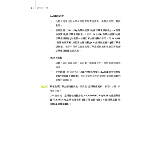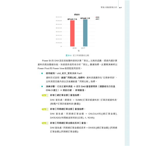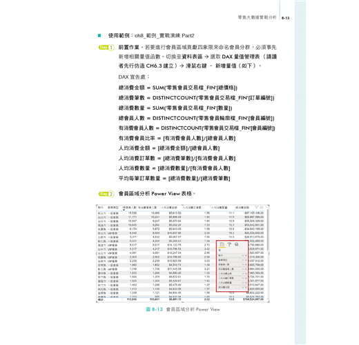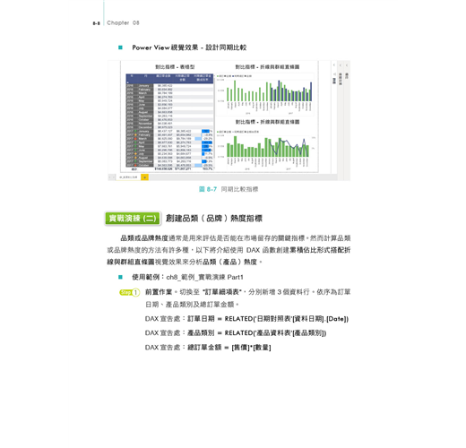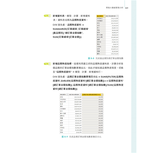 *書籍內容以主題式實戰演練,包括:實作主題分析儀表板及客戶360度圖像標籤儀表板、實價登錄資料清理實戰、運用DAX函數創建分析模型。