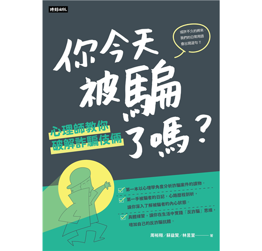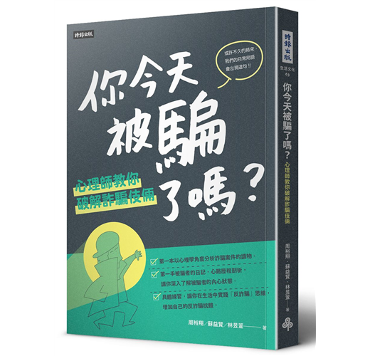 由林昱萱、周裕翔和蘇益賢三位心理師合作撰寫的《今天被騙了嗎?心理師教你破解詐騙伎倆》運用心理學的理論和技巧,在書中分析詐騙行為背後的心理機制,說明詐騙手法與提供反詐騙心法,書中更特別收錄心理師自身的受騙日記,提供第一手的經驗和反思。