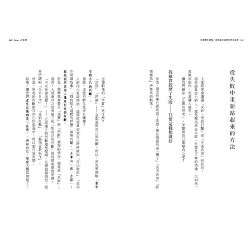 過去,我讀了很多本像稻盛和夫或松下幸之助等名人的著作,還有各種自我啟發或勵志類的書籍,但是總覺得哪裡不對,也沒有因此得到鼓舞或幫助。本書卻能直指煩惱的核心,並且告訴我們可以立刻實踐的方法──我嘗試了,真的得到立竿見影的效果。我不是要說這本書有多神奇,或是鼓吹作者有多了不起。因為,解決煩惱的方法真的就是那麼簡單,只是我們都被很多不必要的東西給遮住雙眼,或是沉溺在自我憐憫中,拒絕看到真相,甚至是拒絕從痛苦中走出來。我唯一後悔的就是,為什麼沒有更早遇到這本書。──兩個孩子的父親