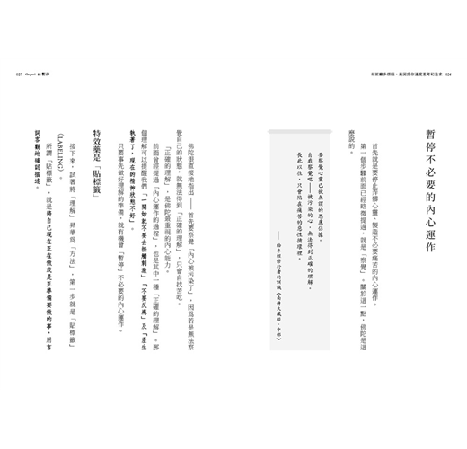 本書中也將佛陀的理念以豐富的「視覺圖像」解說,讓人更直覺地擷取到文字無法立刻掌握的本質。