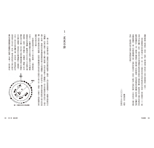 在倫敦西南方大約八十英里處,一個迎風的平原上,壯麗的圓形巨石組成了整個大不列顛最重要的史前遺蹟。數個直立巨石的上方由楣石連接起來,組成一個半圓形,包圍著一個較小的半圓形直立石陣,而它們又被外側兩個更大的圓形巨石陣包圍著。曾造訪巨石陣遺蹟的人會發現,只有一些巨石依然矗立著,而其他一些則倒臥在地或是不知去向。然而,學者和研究人員已經勾畫出這種圓圈包圓圈的結構(見圖1,特別標記了還矗立著的巨石),並且觀察到那些洞暗示了在巨石陣建造前期還有另外兩個圓圈(石圈或木樁圈)曾經存在過。