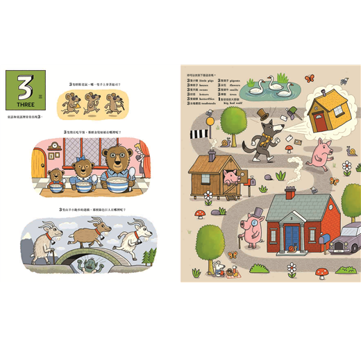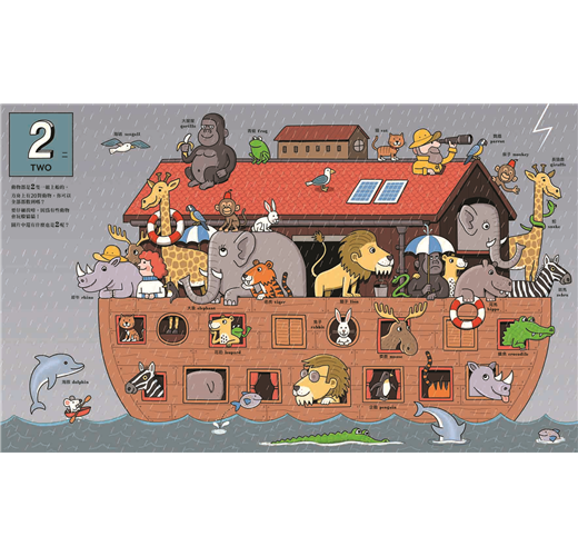 →數字2的方舟上都是成對的動物,數字3裡都是和3有關的童話故事,可以進一步和孩子閱讀這些故事。