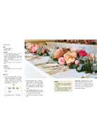 名人推薦:這本書是寫給所有花卉愛好者以及想為他們自己、某位家庭成員或是某位朋友籌備佈置婚禮的人。我用淺顯易懂的用語去介紹和說明實用的花藝技巧、容易取得的工具用品以及成本合理的花材。本書裡很多花藝設計作品,尤其是第一章「婚禮會場的花藝佈置和裝飾」所介紹到的,也可以在其它特殊場合派上用場,例如周年紀念日。