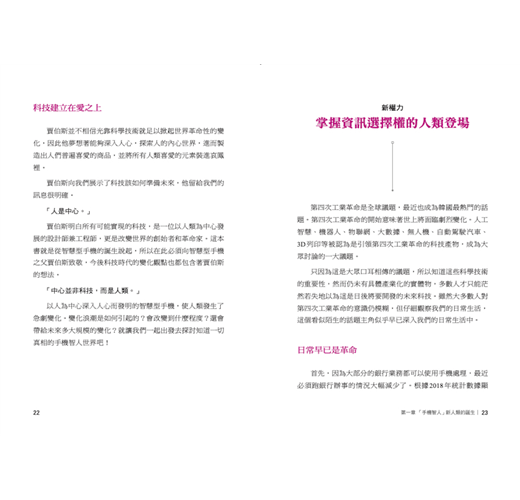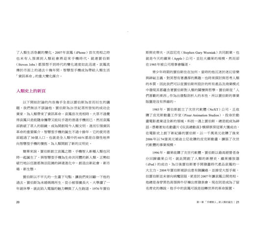 簡單來說,賈伯斯創立哀鳳之際,手機智人新種人類也同時一起誕生了。與智慧型手機為生命共同體的新人類,正勢如破竹地以任誰都無法阻撓的神速進化中,創造出新社會、新市場、新生態。