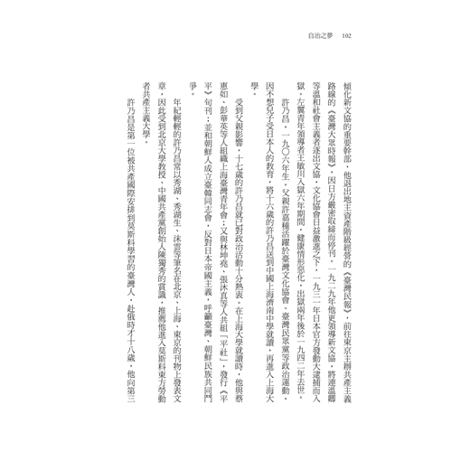 本書是對一九二○年代臺灣民主運動先行者們的致意。長久以來,他們曾經的努力與相關事蹟被政治力量掩蓋,社會大眾所知極為有限。全書以個人多年來的學術研究成果為基礎,希望透過淺顯的文字,以普及版型態呈現給讀者。(未完待續)