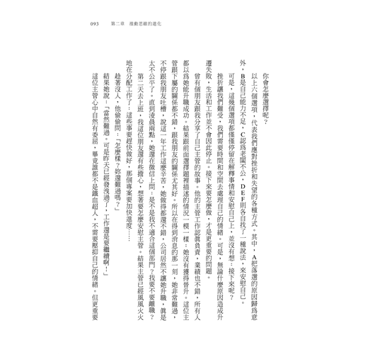 內容專業又通俗易懂。對我這個去年剛主動辭職和離婚的人來說、對正在經歷人生中最大轉折和困難的人來說,這本書讓我明白了很多,也慢慢有了更堅定的信心。感謝作者!