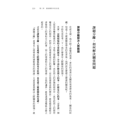 這是每個人都該認清並了解的課題。而真的了解之後,你也會懂得「課題分離」,做出選擇、採取行動、養成習慣,並且最終達到目標,甚至超越你原本對自己的想像。