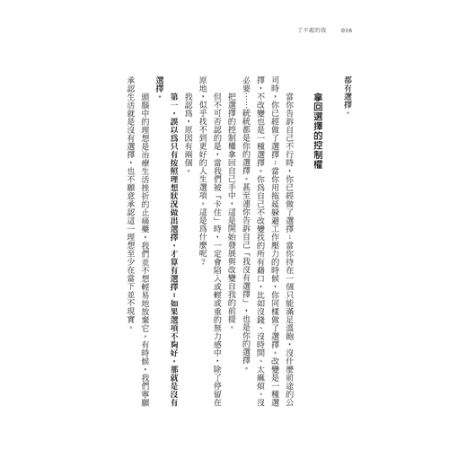好多內容容易跟自己產生共鳴,自己也可以按照裡面的方法去嘗試。當你想做出改變時,這是一本很不錯的書,它確實能教你怎麼去做。