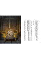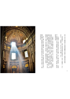 進入聖彼得大教堂,真正的精采才要展開:不可思議的廣大空間、金碧輝煌的華麗紋飾、細膩精緻的藝術傑作……漫步在大教堂,所有的一切都讓人流連不已。不過,真正讓我目眩神馳的是安置於大教堂右廂的宗教聖像。這件作品出自米開朗基羅之手,由一塊卡拉拉大理石所雕刻完成的天才之作。一四九九年出現在世人面前時,米開朗基羅這位當時還沒沒無聞的藝術家才二十四歲而已。傳說這塊卡拉拉原石從海上運來時,連向來自詡見多識廣、品味挑剔難纏的羅馬民眾,對它的雪白純淨也驚為天人。