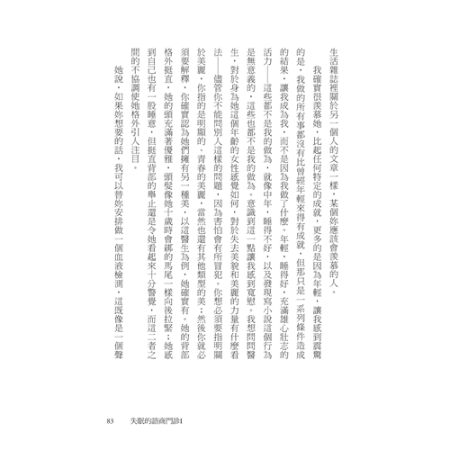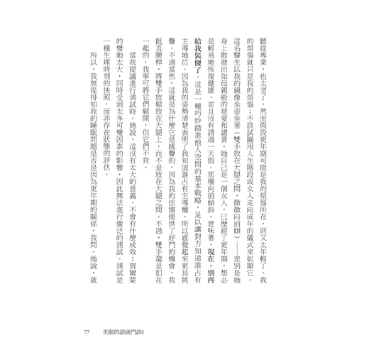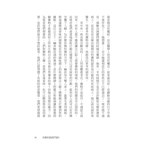 這本書是有趣的、悲傷的、諷刺的、總關注著睡眠的神祕與缺席,且永遠能找到新角度來描述。因此,全書有一種夢遊般的質地——這既煩擾著失眠者,卻也是他們的私人國度。