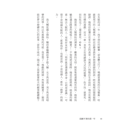 「她在失眠的這一年,找不到任何解藥,卻身體力行了一場創意書寫的行為藝術。」