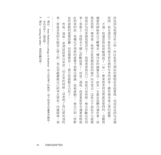 一本關於感覺被剝奪的書怎麼能夠如此地感性和充實?即便是在最哲學、最深遠的意義上都充滿重點、具體、重要的細節。我喜歡在每晚入睡之前閱讀這本書,它似乎讓我的睡眠有了共鳴與詩意。真是一本好美的書。