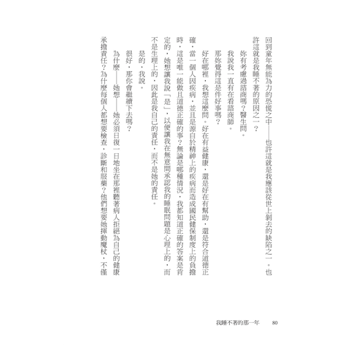 「我以前從來不需要什麼正確的想法,就可以睡了,我從不需要什麼特別的睡眠想法。」