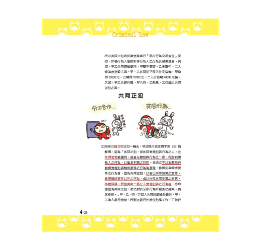 嘆:「在日本留學時,看到很多教科書和考試用的參考書都有豐富的圖表、甚至有逗趣的漫畫實例說明。有一些法律概念,讀過幾本大書後,居然是看了一則漫畫、幾個可愛小人後,才真正的懂。我們的學習圖書如 果有這種入門的教材,喜歡學法律的人應該會更多。」