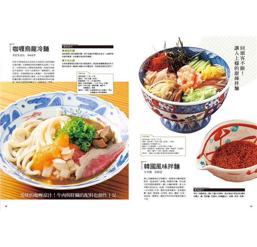 大篇幅彩頁連眼睛都感受得到美食衝擊,詳細解說冷麵製作、醬汁搭配,更多獨門創新料理。