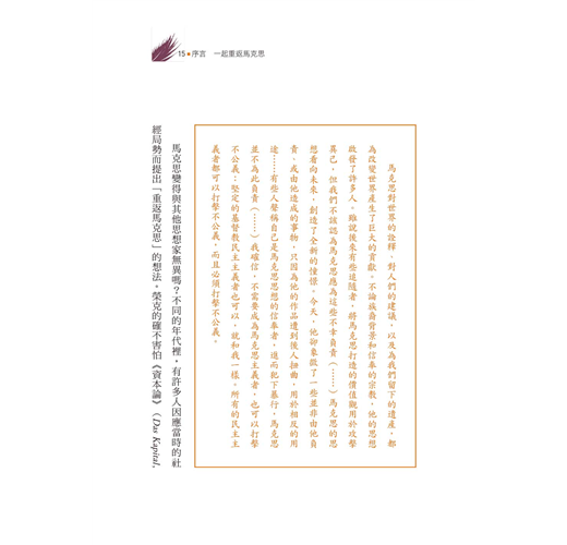 能讓讀者較為持平地認識與馬克思有關的理論、歷史與人物,