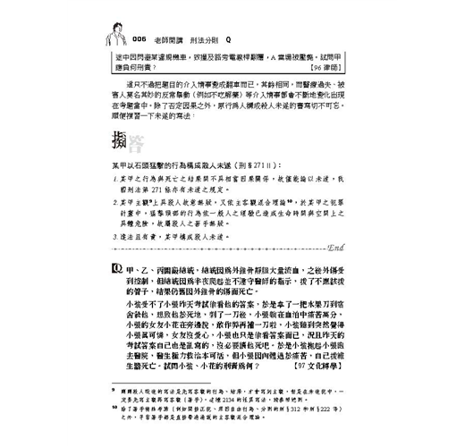 3.對於非台大的學生,有志於台大法研的同學,可以透過本課程學習到台大法研刑法的理論內涵,補習班裡面唯一針對台大法研中「客觀說」理論的教科書僅此一本,別無分號。