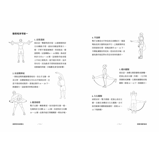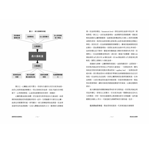 附錄B 則教你如何將輔助訓練融入日常課表中,既能加分,又不至於造成額外的負擔;附錄C 的流汗計算機,為水分補充提供了一個可以參考的標準。