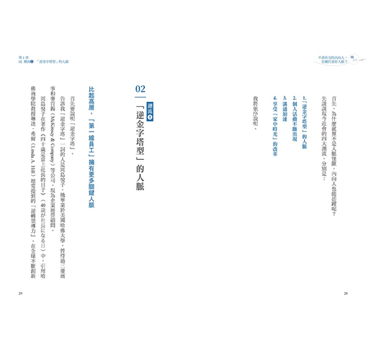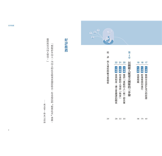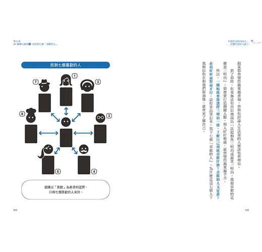 最後第四章是實踐篇,如何找到值得你「親近的人」,並與他交流,甚至把關鍵人脈變成團隊。