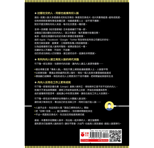 ◎ 有利內向人建立高效人脈的時代來臨竹下隆一郎注意到,社群時代的改變,讓內向人建立人脈更有優勢──