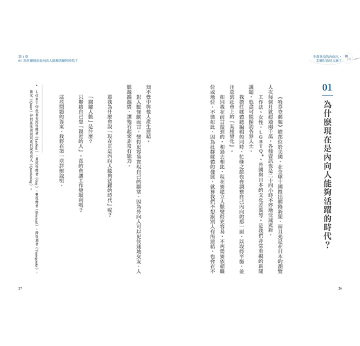 這不僅是一本教內向人敞開話題的書,也是一本教內向人身邊的人如何創造「內向友善」環境的書,而打造內向友善的還境,才能讓團隊激盪出更好的想法。書裡有觀念也有具體方法,無論是想建立人脈的內向人、外向人或主管,都很受用!