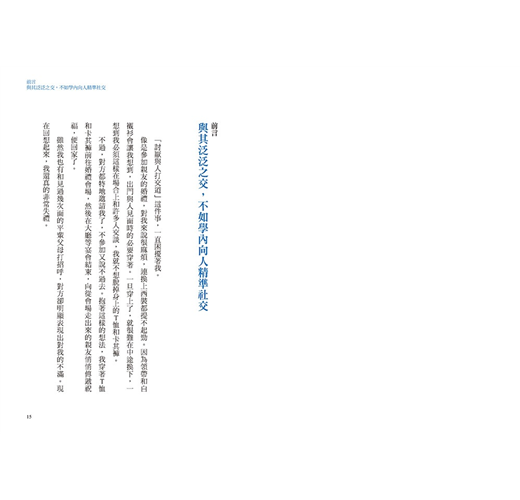 「相較於外向人,內向人的社交能量更顯得珍貴。作者提出的『精準社交』思維,