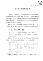 三、每章內容編排,章首先列「學習重點」,次列「導讀」,說明各章節學習的核心關鍵;再列「溯古說音(因)」,藉由詩文或日常生活相關的內容,啟發語音課題的想像與思索;其次為各節專題內容,除第一章緒...