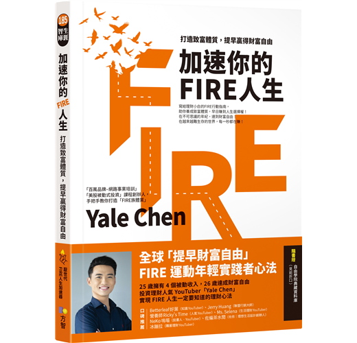【好評推薦】 •Yale是我YouTuber界的第一位好朋友! 當時我們的頻道都還很小,因爲一起拍了Feat影片,讓我們兩人同時被更多人看見。還記得剛認識時,我們經營YouTube頻道都是校長兼撞鐘,從腳本到剪片都是自己一手包辦,同時也還有正職工作。 看著Yale一路走來,從兼職的YouTuber變成全職,現在還開了公司,擁有自己的團隊,靠自己的努力替自己創造了多元的被動收入,開始過著自由的生活! 如果你也想要開始打造自己的自由生活,成為FIRE的一員,那一定要認真看完這本書! ──Ms. Selena(生活理財YouTuber) •Yale是我認識最乾脆、最果斷且最有行動力的理財達人。從他身上,我不只學到如何精準挑選出適合自己的投資方式,更獲得扎實易懂的行動清單。Yale經常跟我說:「夢想沒有搭配行動,永遠只是夢想。」這本書能讓你發現,只要持續付出行動,達成財富自由是遲早的事! ──佐編茶水間Zoey •這是一本你如果可以穿越時空,絕對會推薦給20歲的自己,拜託他早點看完、開始實踐的好書──現在你就不用看老闆臉色、整天擔心錢不夠用、買不起房子,可以悠哉在陽台曬太陽、過著財富自由充實的人生。 欸,我說真的!我跟Yale第一次見面的時候,心裡真的是這樣想的。逆境讓人成長,Yale雖然會幽默地自我解嘲,卻也讓我們了解到,只要有心想改變、想學習,任何時候都不晚。這本書就像是一張急速高鐵車票,Yale直接濃縮他的經驗,用誠摯幽默的語氣跟你分享如何搭上這班列車。跟一般理財書不一樣的是,你絕對會有很多「會心一笑」的點。本書讓你讀得輕鬆,卻學到未來少奮鬥大半輩子的能力。這絕對比把下半輩子交付給另一半更實際吧! ──冰蹦拉 【讀者強推】 ★讀者實踐•口碑強推! •感謝Yale的影片,每次都給我新的動力。每當變得懶惰的時候,看Yale的IG貼文總是莫名燃起新的動力繼續投資。身為學生、半工半讀的我,每個月薪水才24K,一想起Yale的影片,還是會每月省下6000元去投資。先投資自己,再去支付自己! •年至30的我,這幾年想要學投資理財,卻一直沒有方向,不知如何著手。Yale的頻道對於我這個投資新手來說,可說是非常有系統,讓猶如一張白紙的我,也有了概念。 •感謝你的影片一直以來帶給我的啟發,自從經營起副業後,我的收入已經比半年前成長一倍了,我也很確定未來還會繼續成長;雖然放棄了休假與社交,但我的生活從未像現在這樣充實。真的,誠心地感謝。 •我今年工作第二年(年紀跟Yale差不多)。正當開始接觸投資理財時,我認識了Yale。我非常認同他的理財觀念,他踏實地了解整個投資概念的脈絡才落實投資行為,得到的每一分收益都能說出來龍去脈,而非是天上掉下來的禮物。 •我看著Yale的影片一步一步地成長,建立好的投資觀念,現在也開始賺進被動收入了。 •從一開始YouTube追蹤人數一兩千人關注Yale到現在,發現他不斷成長、進步。謝謝你無私和大家分享收穫! •Oh My God,10%的獲利!朝FIRE又近了一步。