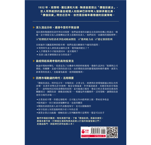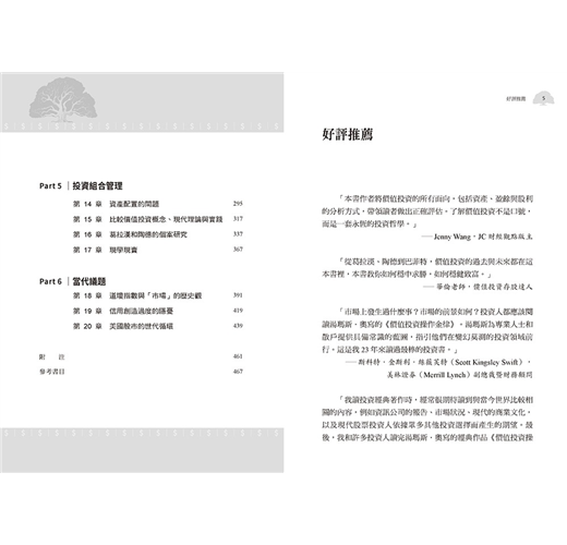 「本書作者將價值投資的所有面向,包括資產、盈餘與股利的分析方式,帶領讀者做出正確評估。了解價值投資不是口號,而是一套永恆的投資哲學。」──Jenny Wang,JC 財經觀點版主