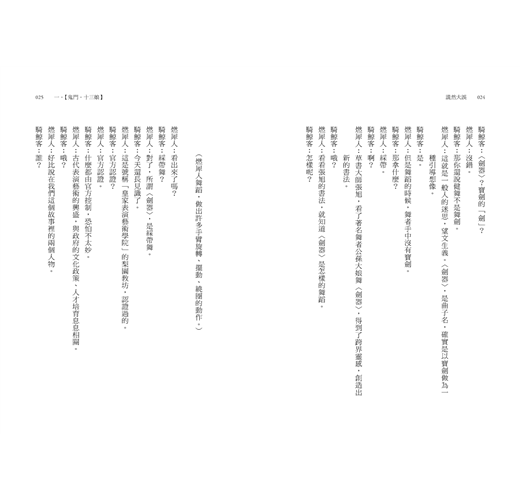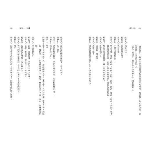 「謊」的定義,被這學弟撐開擴大了,幾乎是反射動作,「無謊不歡」,不只在臺上,日常生活裡,也運用「矇」、「混」、「誘」、「欺」各種伎倆,不辭繁瑣地,玩弄眾人,且經常上節目,去講那些不是發生在他身上、別人家的「經歷」。聽去、讀去我的童年、我的家世、我的爸爸,都在各種意想不到的時刻,從他嘴裡說出,「扮演」他的人生。與其基於道德,向他勸說?(那樣長達三十年的好日子已經過了)不如我也卑鄙一回,寫下來公諸於世?從事業角度來看,原本不善編謊的我,現在有了絕佳的典範,遵照他的表現,自然而然就寫出精彩的角色。一張專門說謊的嘴,最能發揮的地方,就是舞臺!