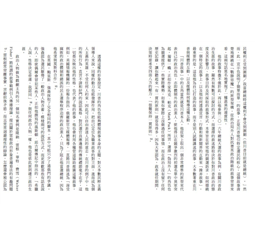 書本的最後一章提醒大家(或許也可以說是提醒所有政治人物),說故事是一個說服的過程,但不是政治的全部,我們該把重心放在制定政策和實行層面。如果一個政治人物只有話術而沒有政策內涵,無法走得遠。「當今政治舞台上最突出的演員,是那些把自己包裝成非典型政治人物的人。」讀者們有沒有覺得,在很多地方出現的狀況都很像呢?