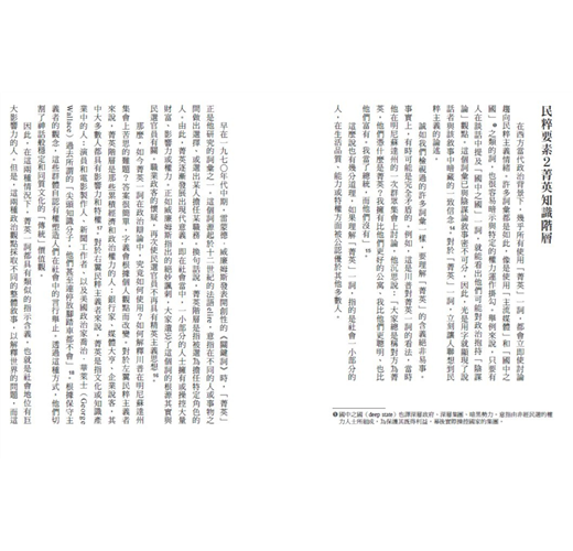 「塞吉安特認為,如果不思考政治人物的溝通行動、及其與流行文化和好萊塢電影中的故事敍述有何相似之處,就無法真正理解英國脫歐運動和美國總統川普、巴西總統波索納洛和匈牙利總理奧班等政客近期成功崛起的因素。這是一本令人害怕的書,但任何對當今如何進行政治溝通感興趣的人,都應該拜讀。」──大衛•布洛克(David Block),加泰隆尼亞高等研究院(ICREA)社會語言學教授、西班牙龐佩法布拉大學(Pompeu Fabra University)