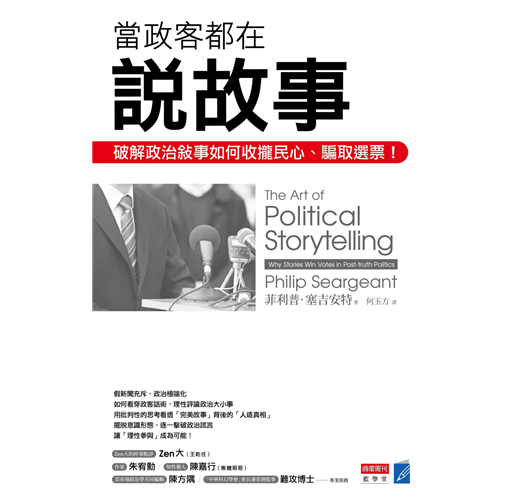 「菲利普•塞吉安特這部題材新穎又有趣的作品,為當前的『後真相』困境提供獨特的觀點。當你發現說服人們的不是論證,而是受故事影響時,該怎麼辦?如果其中一些故事並不真實,該怎麼辦?本書精確地闡釋『敘事』在政治論述中的重要性。讀後感嘆世事、領悟真意,了解政客如何贏得選舉!」──李•麥金泰爾(Lee McIntyre),《後真相》(Post-Truth)作者、美國波士頓大學哲學科學史中心研究員