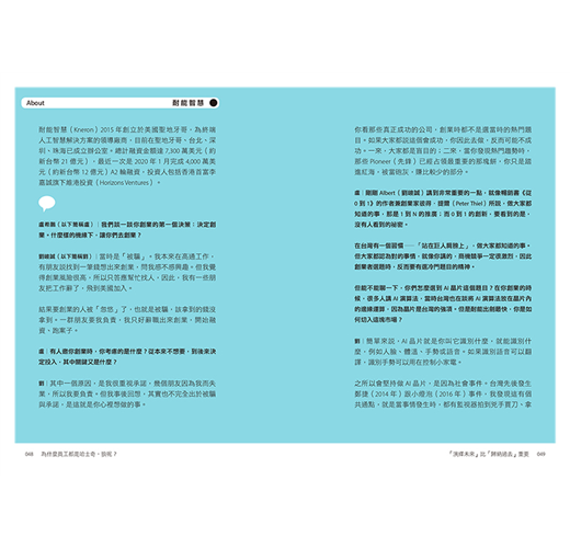 在本書個案中,許多創業家都有顯赫的學歷與優渥的工作,原本都可以做隻開心的哈士奇,但為什麼要出來創業?iKala愛卡拉共同創辦人程世嘉在人人稱羨的Google擔任過工程師,SHOPLINE創辦人劉煦怡畢業於美國芝加哥大學,曾在高盛投資銀行工作。