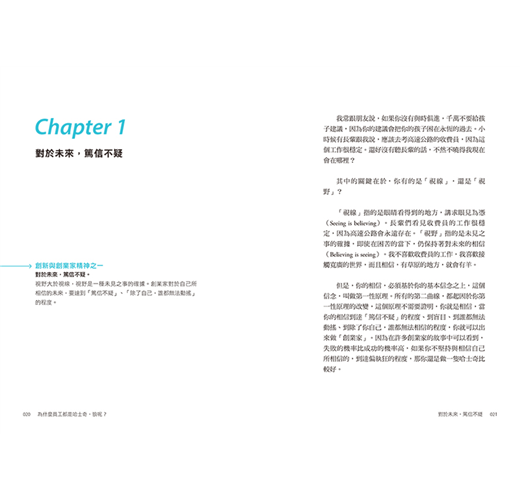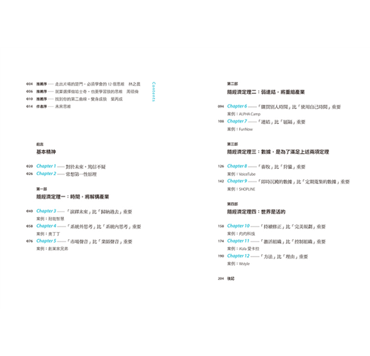 4個隨經濟定理,12個創新與創業家精神,10個創業家故事,每一個都非常具有啟發性。如同史丹佛大學設計學院d.school共同創辦人George Kembel的名言:“We are focusing on the innovator, not innovation itself. ”這句話的大意是:我們聚焦在「創新者思維」(Innovator),而不是他們做出來的「創新成果」(Innovation)。掌握這些創業家創新的過程,你可以在自己的領域裡創造出無限的創新成果;如果你只關注別人創新的成果,你就只能抄襲或模仿了。