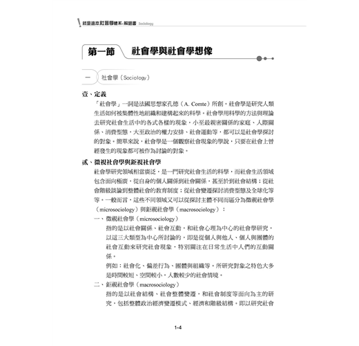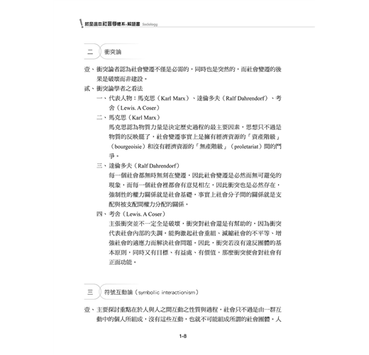 最後,筆者將整個社會學架構以圖說方式解說大致方向與考試趨勢,使讀者在開始閱讀本書之前,都能先快速掌握社會學重點與各章節關聯性呦!