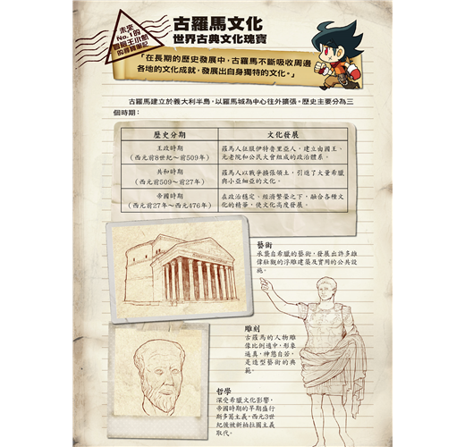 全彩印刷畫風細緻、故事題材生動有趣,淺顯易懂的歷史及地理知識。