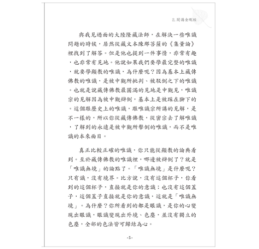與我見過面的大陸隆藏法師,在解決一些唯識問題的時候,居然從藏文本陳那菩薩的《集量論》裡找到了解答。但是他也提到一件事情,非常有趣,也非常有見地。他說如果我們要學最完整的唯識,就要學顯教的唯識,為什麼呢?因為基本上藏傳佛教的唯識,是被中觀所批判、被駁倒之下的唯識。也就是說藏傳佛教最圓滿的見地是中觀見,唯識宗的見解因為被中觀辯倒,基本上是被踩在腳下的。這個跟歷史上的唯識,跟唯識宗所講的見解,是不一樣的,所以你從藏傳佛教,從密宗去了解唯識,了解到的永遠是被中觀所擊倒的唯識,而不是唯識的本來面目。