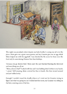 After a couple of minutes, Mom stood by the door to see him off. That night, Mom and I shared one bed while Grannie took care of the younger brothers in another room. We cuddled and cried for the whole night.