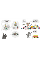 原來,把這一團混亂的「垃圾山」好好整理分類、收拾完畢後,出現的是一幅歡樂美好的派對場景!結果,下一頁大家在太高興的情況下,又把整頁畫面弄得一團混亂了⋯⋯這樣的安排真可說是充滿了趣味。