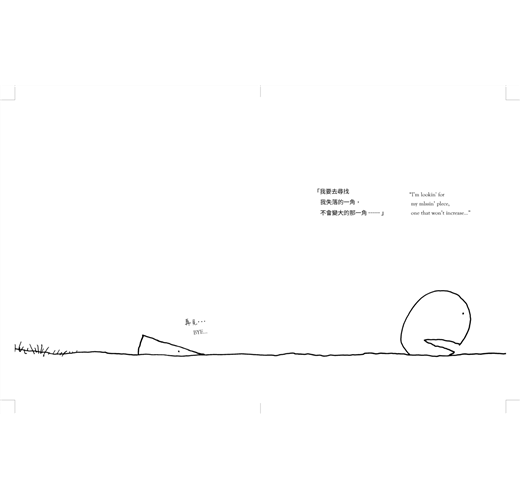 《失落的一角》、《失落的一角遇見大圓滿》是美國繪本大師謝爾最為人傳頌與膾炙人口的作品。2018年2月出版後深受讀者喜愛,水滴文化特別推出中英雙語雋永典藏版,封面採燙黑打凹設計,精緻質感,典藏繪本大師的智慧之作。