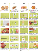 將六角形長螺帽包上紙張作成食品禮盒、以小木塊裁出造型,作成沙拉油罐的原型再以BlueMix取模、將黏土小物倒入透明的環氧樹脂,表現真空包裝食物的質感、以剪碎的羊毛條黏貼於黏土表面,作出奇異果的絨毛表皮、以染色的玻璃珠作成晶瑩剔透的葡萄串、在濾網上按壓黏土,製作花椰菜……袖珍食物的作法並不難,關鍵在於這些奇思妙想的實踐;請跟著書中的圖解教作,一個接一個地作出迷你可愛又超擬真的袖珍食物吧!
