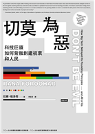 《金融時報》(Financial Times)全球財經專欄作家拉娜‧福洛荷(Rana Foroohar)在她的新書《切莫為惡:科技巨頭如何背叛創建初衷和人民》(Don't Be Evil: How Big Tech Betrayed Its Founding Principles -- and All of Us)中,以她豐富的的調查報導經驗和採訪商業與科技新聞將近三十年所累積的人脈,從精湛的觀點深入挖掘谷歌、臉書、蘋果、亞馬遜等科技平臺巨獸如何拿使用者的資料和注意力去換取金錢,而這些高得離譜的利潤,廣大的使用者卻連一毛錢都看不見。在看清這些掌控數位科技巨頭的真面目和他們所使用的各種掠奪手段後,福洛荷提出她的願景主張,希望藉由打造全方位改善現況的各項措施,削弱科技巨頭予取予求的能力,讓廣大的使用者在享受數位生活的同時,免於遭受科技的黑暗面傷害。