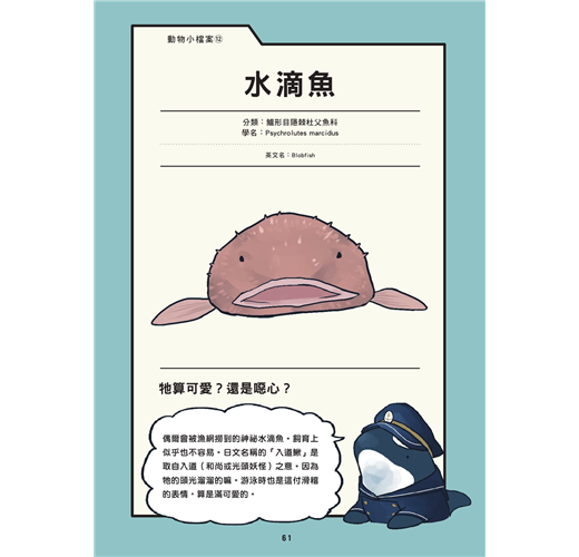 ★看起來很可愛的企鵝,爆衝起來時速竟然超過10km!水豚的臉看起來傻傻愣愣,但牠的眼睛、鼻子、耳朵可是長在最巧妙的地方,輕鬆就可露出水面!水族館中各種生物有趣知識大集合,讓你越來越愛各種水中生物!